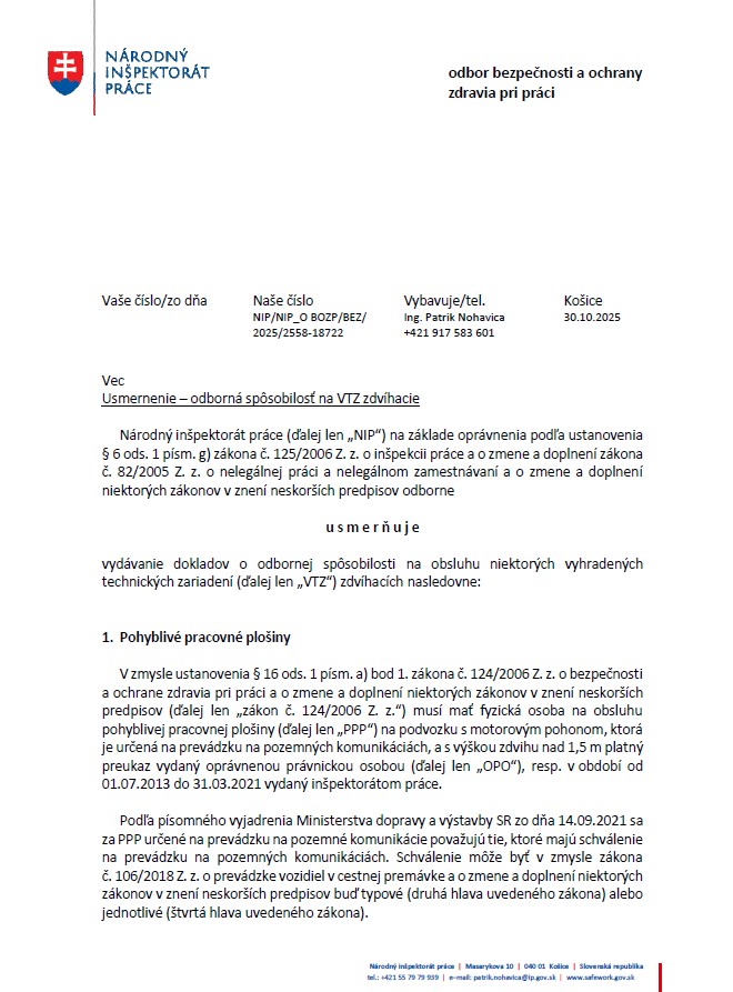 Kurzy na VTZ zdvíhacie podľa platnej legislatívy na území SR neobsahujú praktický zácvik. Ak máte záujem o kurz, treba sa najprv na kurz prihlásiť cez online prihlášku a hneď po prihlásení Vám na Vami zadaný e-mail príde potvrdenie o zaradení do kurzu, podrobné informácie o kurze a tlačivo pre Vášho obvodného lekára.