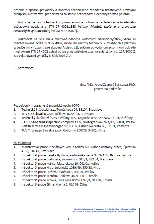 Po úspešnom základnom kurze a overení vedomostí, je každému účastníkovi vydaný Preukaz vežových žeriavov. Opakované školenia sa vykonávajú 1 x do 36 mesiacov. Preukaz obsluhy stavebných vežových žeriavov je platný len na území Slovenskej republiky. Možnosť vystaviť aj EU certifikát platný v celej európskej únii.